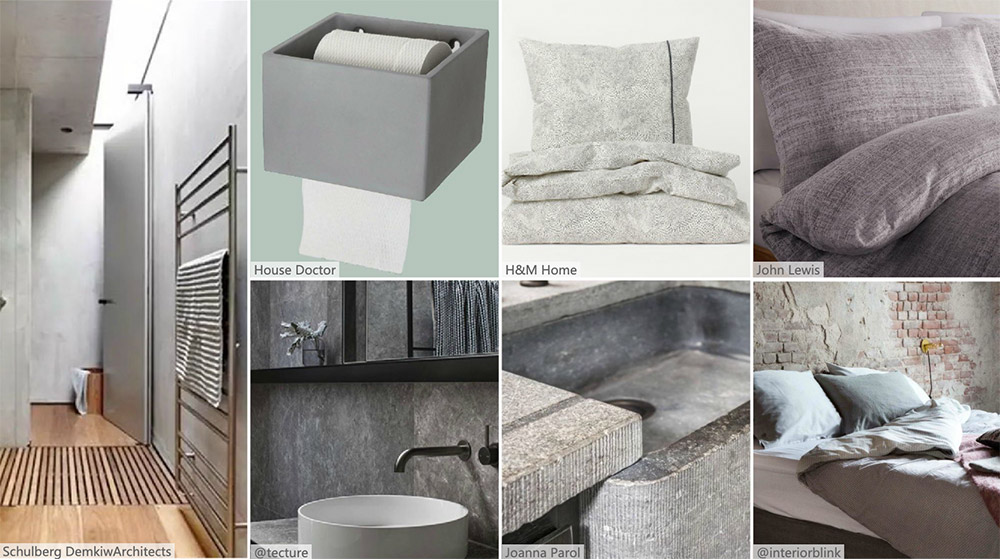 工業化流程和材料激發了具有都市感的設計趨勢,彰顯簡約的形式和紋理表面。混凝土是該主題的關鍵材料和靈感,尤其對于浴室來說,并可利用棱紋效果使其更具有趣味感。對于床上用品來說,使用多色編織和印花,而不是普通的灰色材料。這將為具有陽剛之氣的設計趨勢增添感官深度和質感。